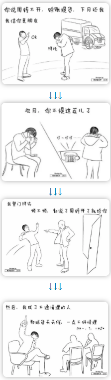 其實,我收欠款也不是存銀行,我也是要付給我的供應商,我的供應商給了我最大的信任和支持,但是我知道他們和我一樣資金緊張。